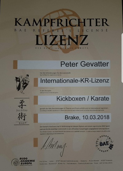 Am 27.10.2018 wurde der ,, McDonalds Gutschein " der BAE ( BUDO AKDEMIE EUROPA ) für die meisten Teilnehmer bei den ,,BAE GERMAN OPEN`" am 22.09.2018 in Osterholz - Scharmbeck eingelöst . Unser Studio war natürlich , wieder mit 60 Teilnehmern dabei ! An den Start gehen lohnt sich .