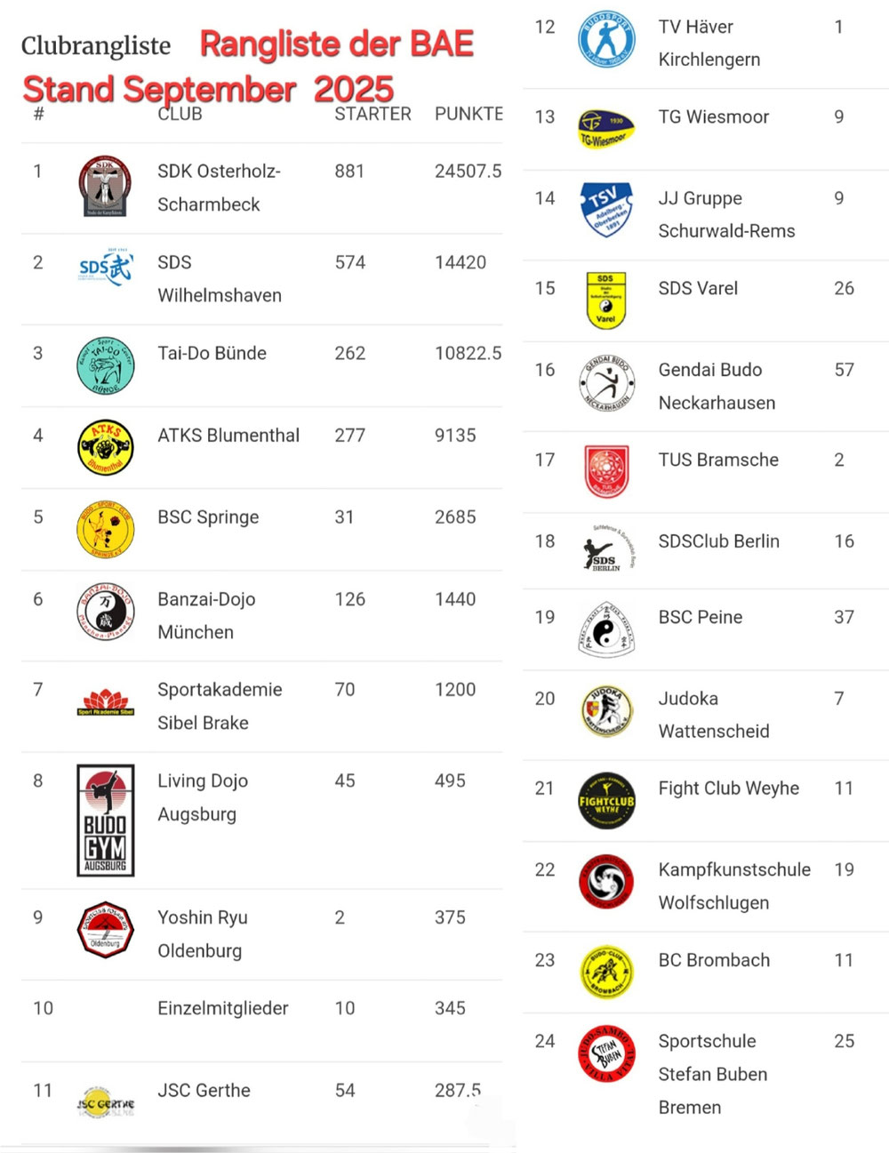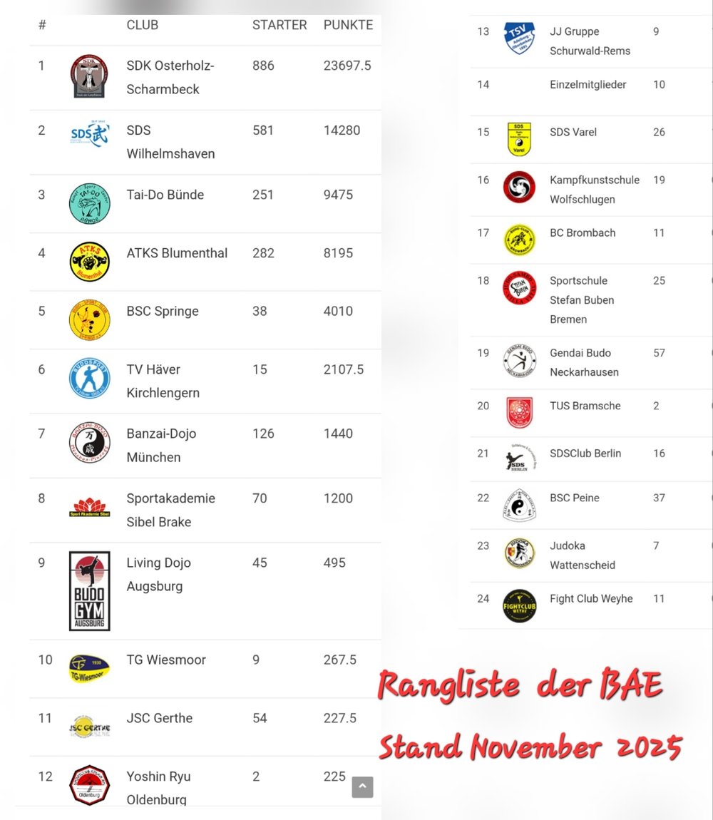 Rangliste der Dojos